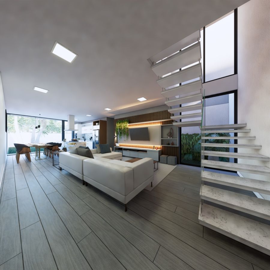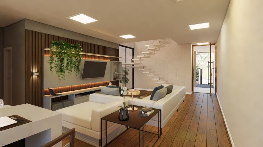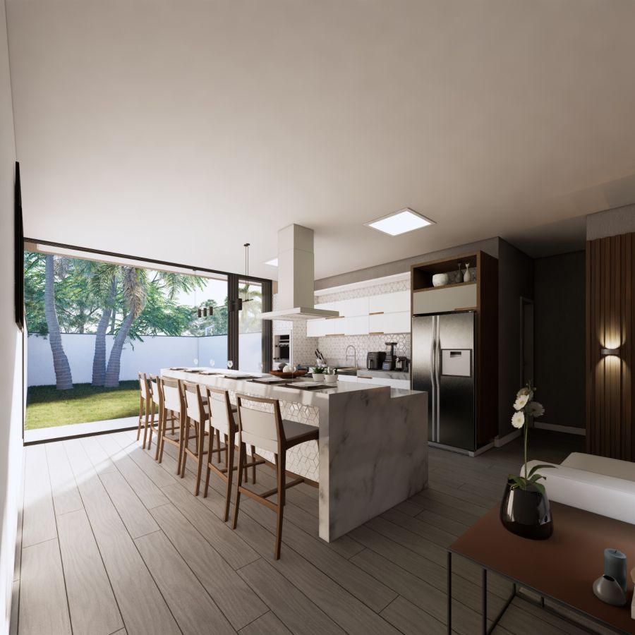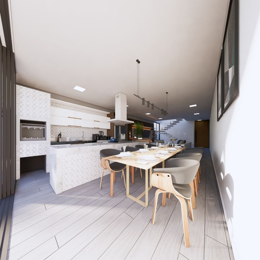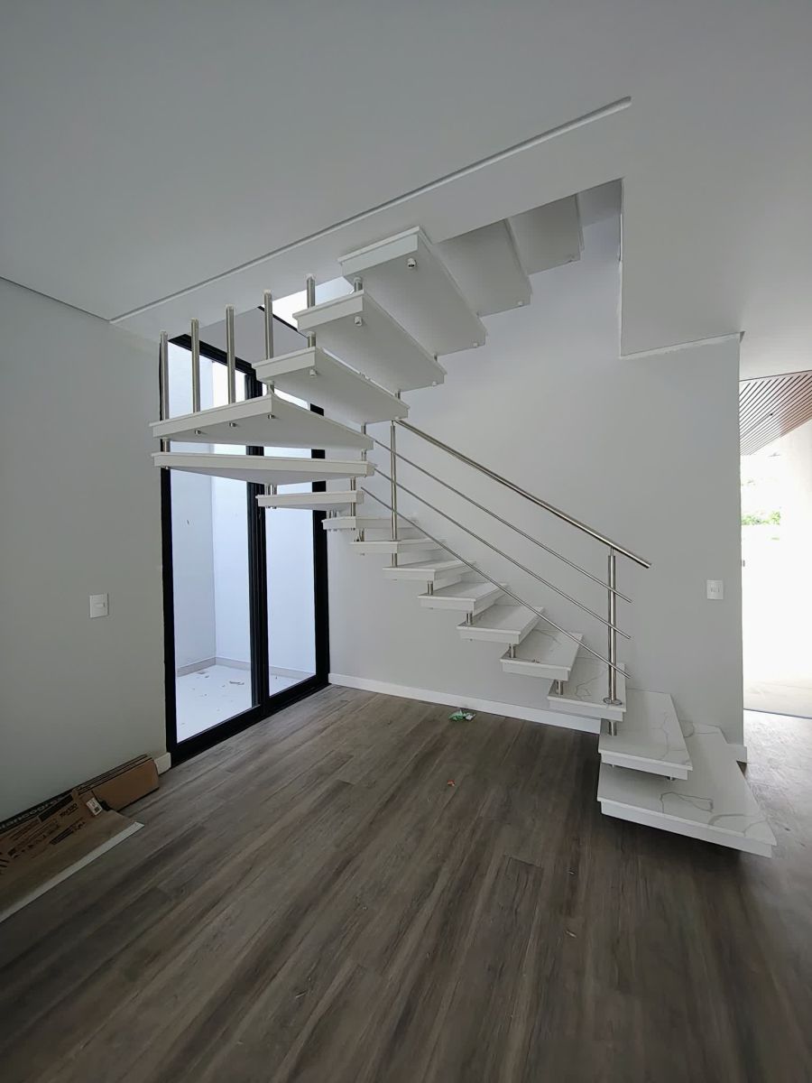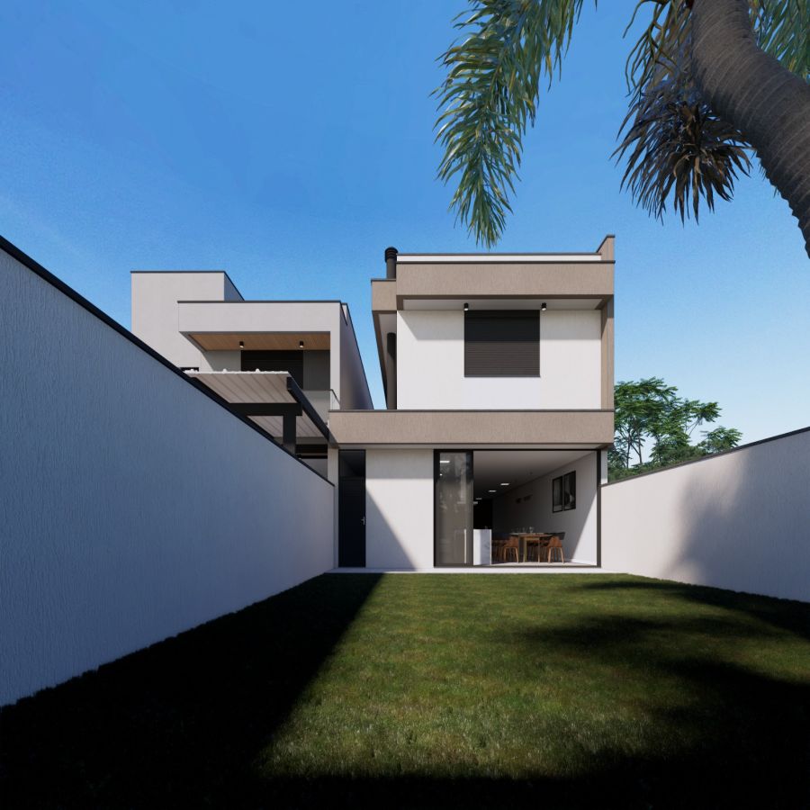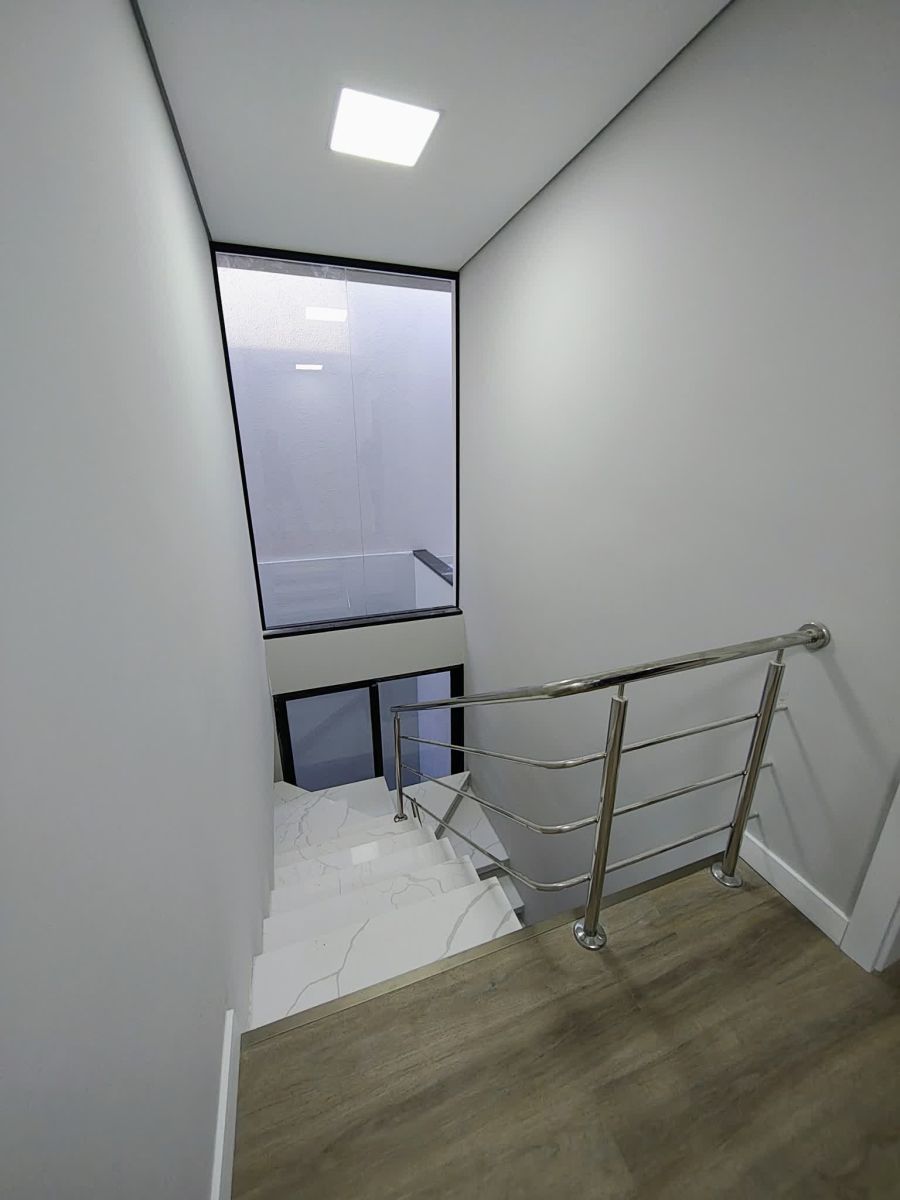 Casa Nova  de dois pavimentos, recém-construída com 170m² de área privativa. Dispõe de 3 suítes, sendo a principal com sacada de vidro. Escadas com corrimão em aço inox. Possui espera para instalação de carregador para carro elétrico e instação de piscina. Localizada em área nobre com vizinhança de casas de alto padrão.