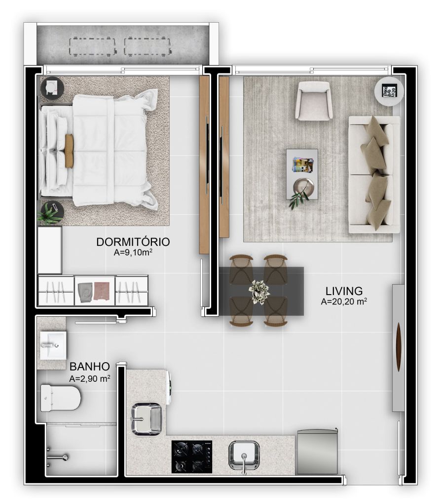 Apartamentos de 1 dormitório com 37m²