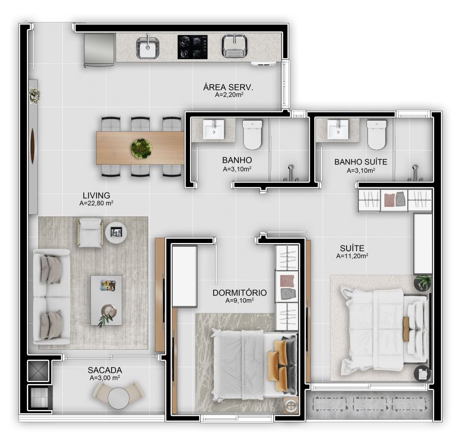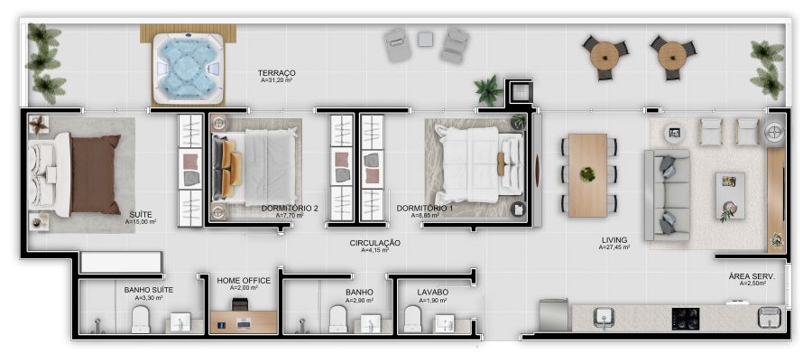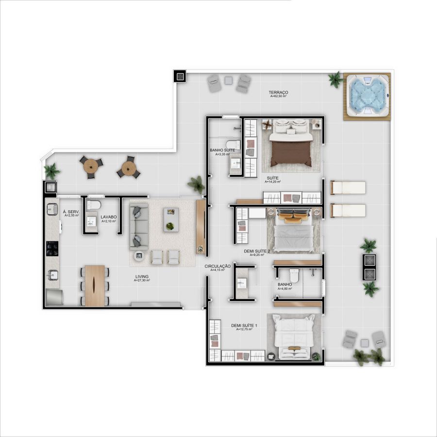 - Área Privativa: 62,50 m²